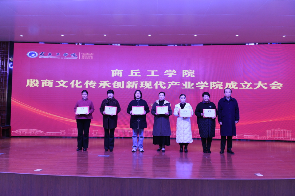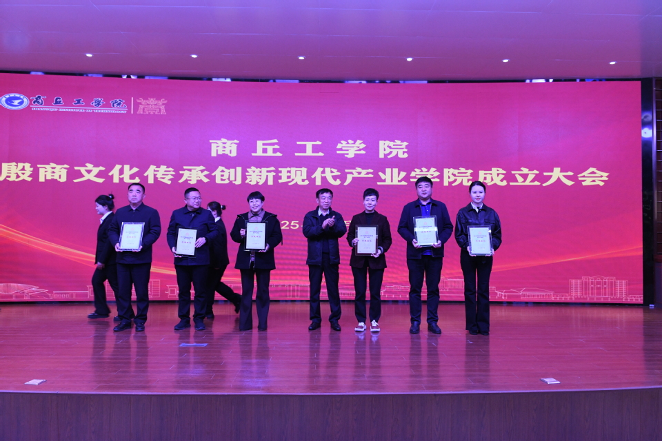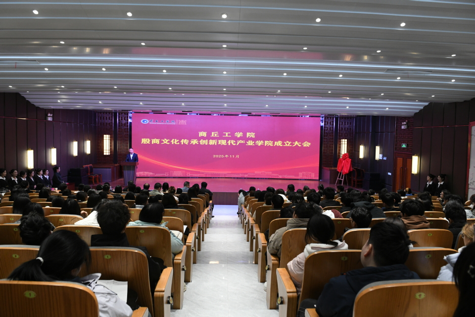 11月19日上午,商丘工学院殷商文化传承创新现代产业学院成立仪式在科苑西一楼报告厅举行。商丘市文化广电和旅游局党组书记、局长史新艳,商丘市文学艺术界联合会党组书记、主席刘瑞芳,商丘古城党工委书记刘勇,商丘古城文化旅游发展集团有限公司副总经理潘传信,商丘市文化馆党支部书记、馆长张腾飞,商丘博物馆党支部书记、馆长马磊,我校董事长丁华,党委书记石培哲,校长丁艳红,副校长丁天彪,党委副书记王峰,校长助理王保起,教育与现代艺术学院院长赵传江出席仪式,业界专家、学者,非遗传承人代表,产业学院内设机构全体成员,教师代表,学生代表参加了仪式。仪式由王峰副书记主持。